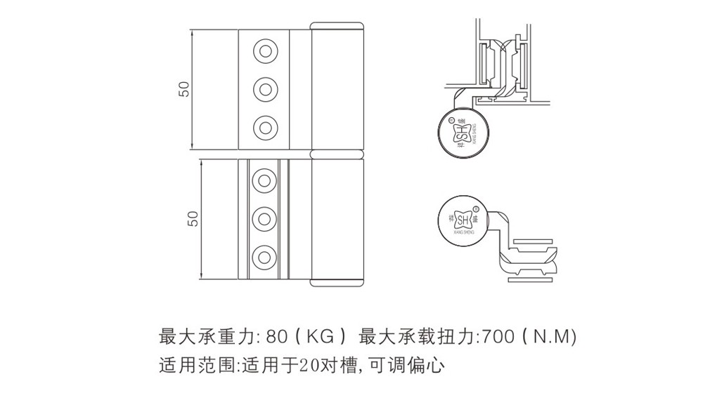 適用于20槽型材上,可調偏心,每對最大承重80(KG),最大承載扭力700(N.M)